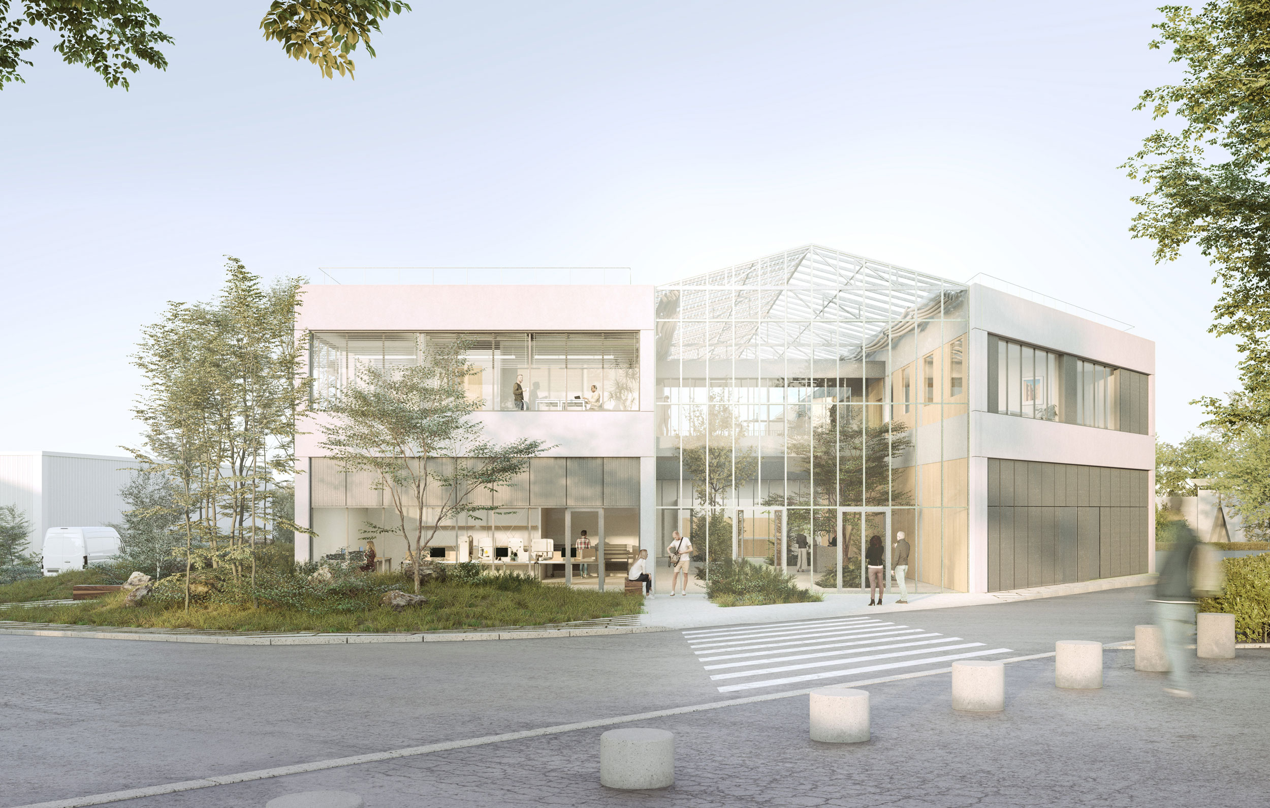 Le bâtiment est conçu conformément aux exigences RE2020 et vise un niveau E3C1 ainsi qu’un profil HQE Performant, en intégrant des installations de chauffage, ventilation, climatisation et traitement d’air hautement maîtrisées, raccordées au réseau de chaleur urbain et associées à une production autonome d’eau glacée. L’ensemble du projet répond à des objectifs de confort, de performance énergétique et de fonctionnalité technique adaptés aux usages spécifiques des différents laboratoires et ateliers